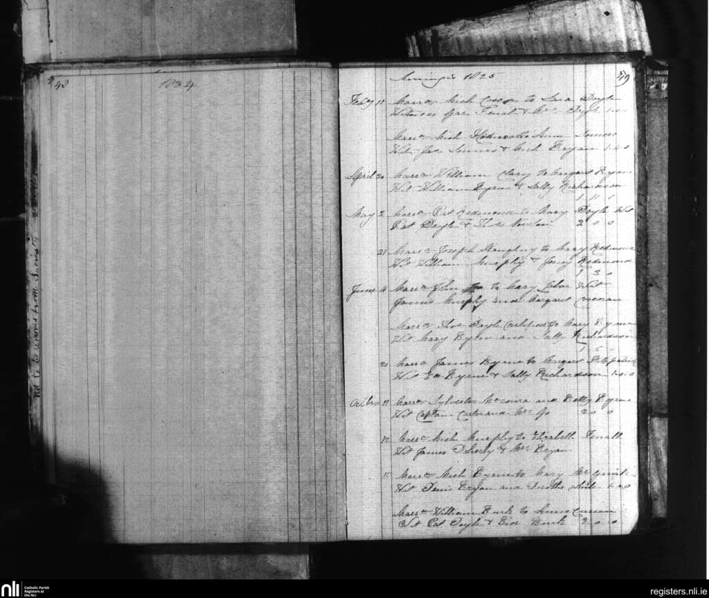 Tullow; County of Carlow; Diocese of Kildare and Leighlin. Marriages, Feb. 1825 to Oct. 1825