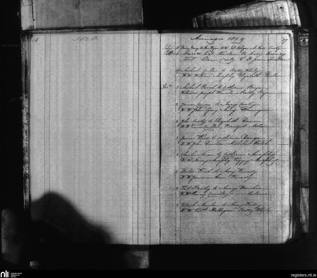 Tullow; County of Carlow; Diocese of Kildare and Leighlin. Marriages, July 1829 to Nov. 1829