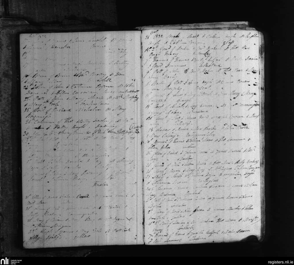 Tullow; County of Carlow; Diocese of Kildare and Leighlin. Baptisms, Sep. 1832 to Nov. 1832