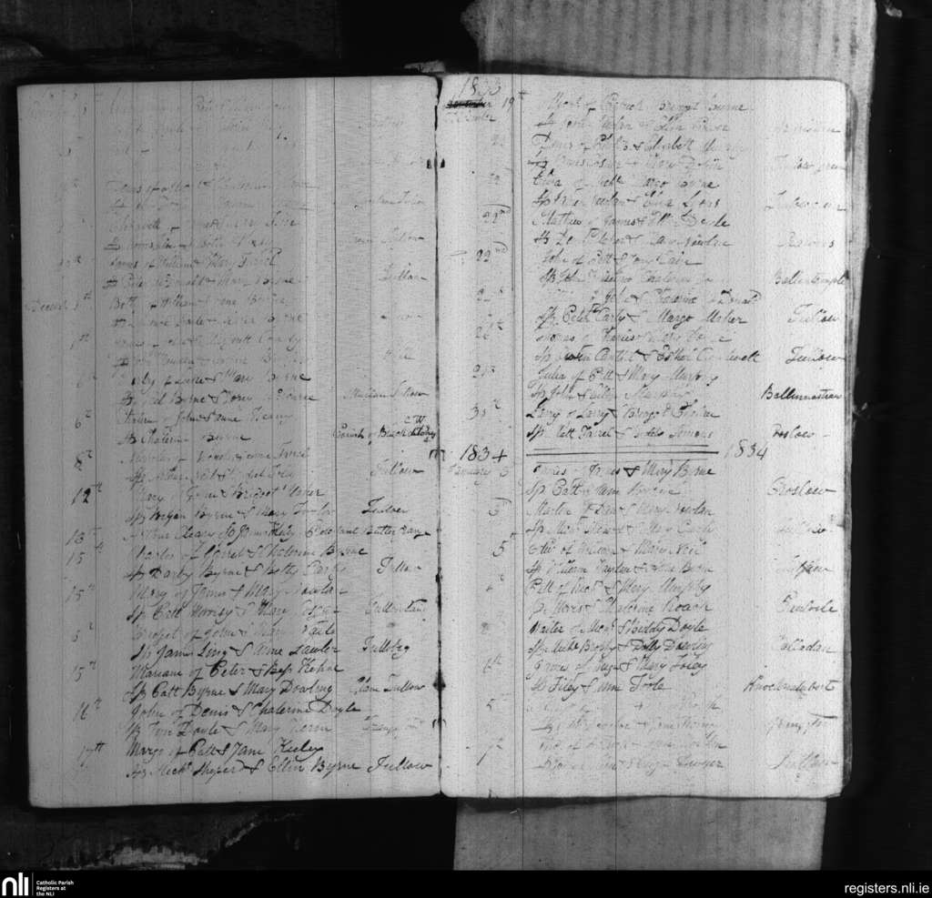 Tullow; County of Carlow; Diocese of Kildare and Leighlin. Baptisms, Nov. 1833 to Jan. 1834