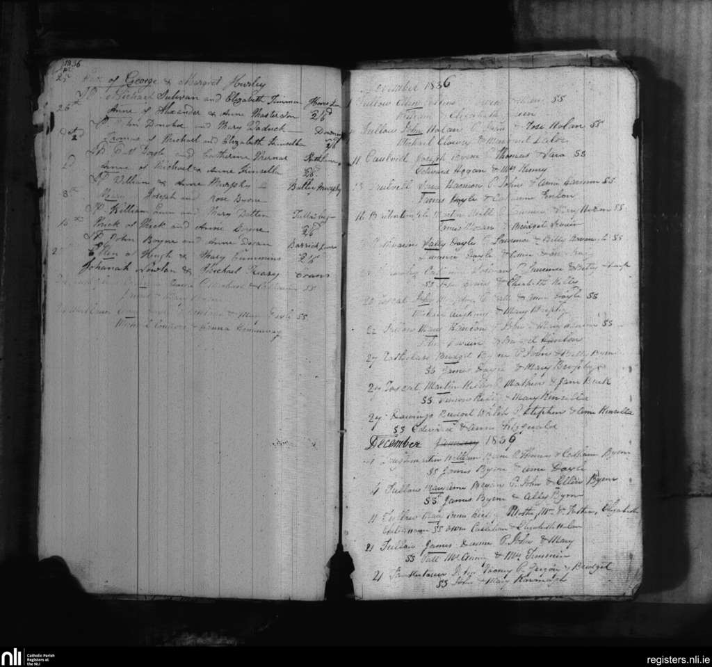 Tullow; County of Carlow; Diocese of Kildare and Leighlin. Baptisms, Sep. 1836 to Dec. 1836
