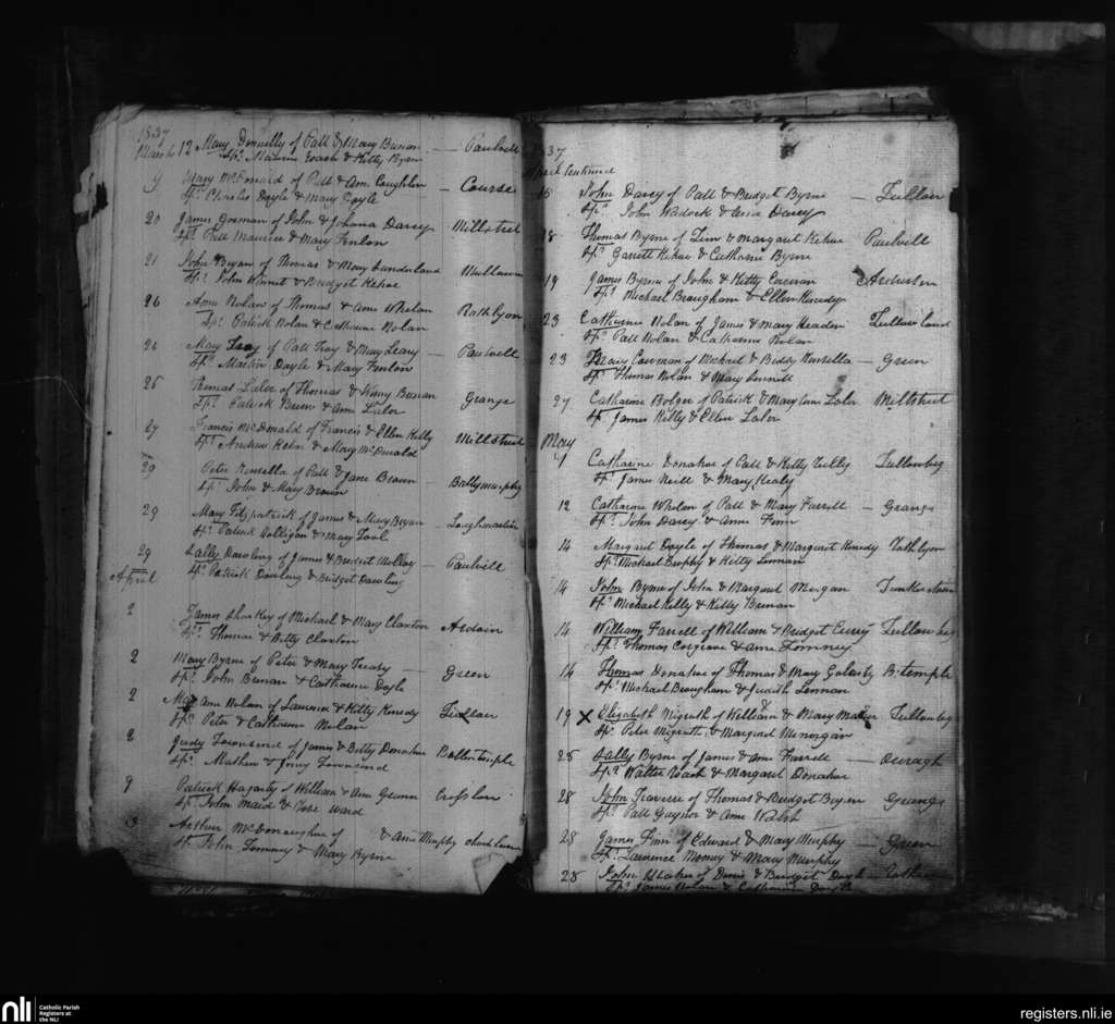 Tullow; County of Carlow; Diocese of Kildare and Leighlin. Baptisms, Mar. 1837 to May 1837