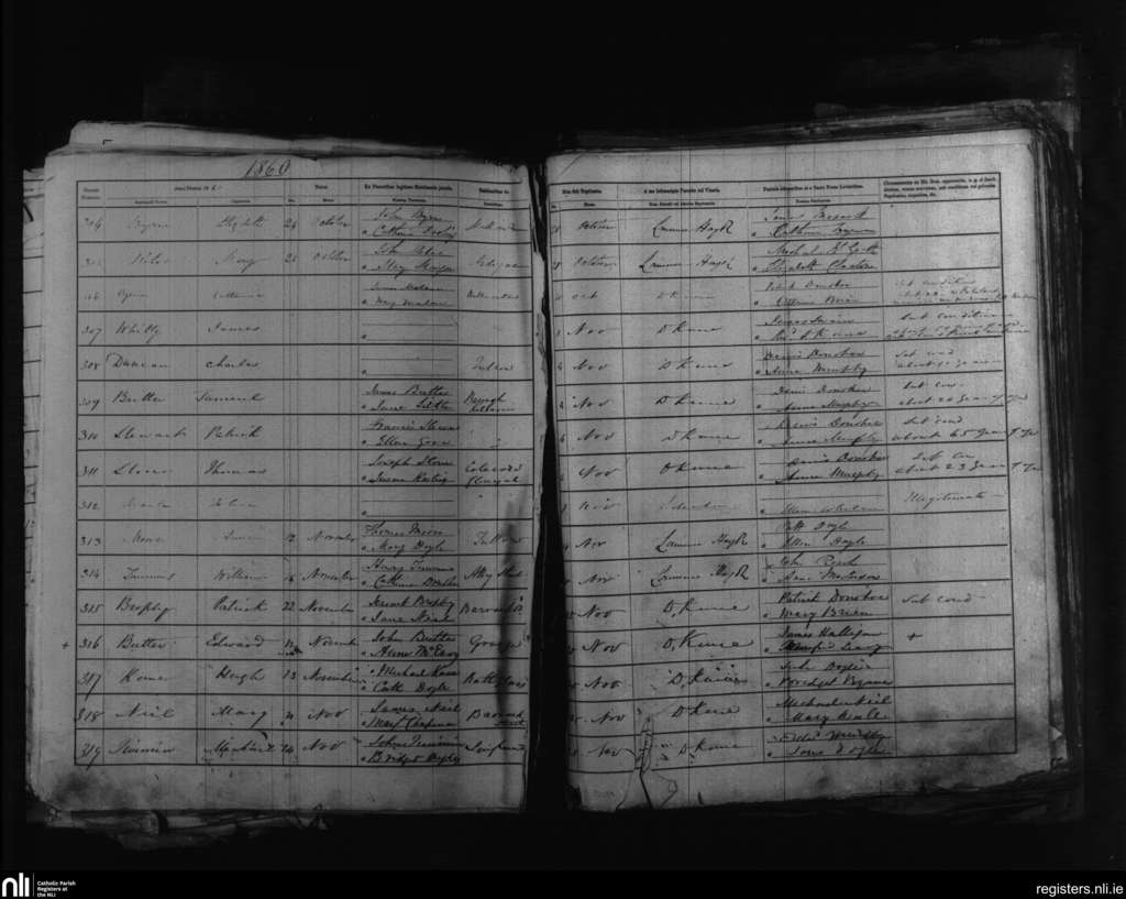 Tullow; County of Carlow; Diocese of Kildare and Leighlin. Baptisms, Oct. 1860 to Nov. 1860