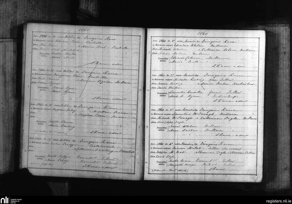 Tullow; County of Carlow; Diocese of Kildare and Leighlin. Marriages, Oct. 1860 to Nov. 1860
