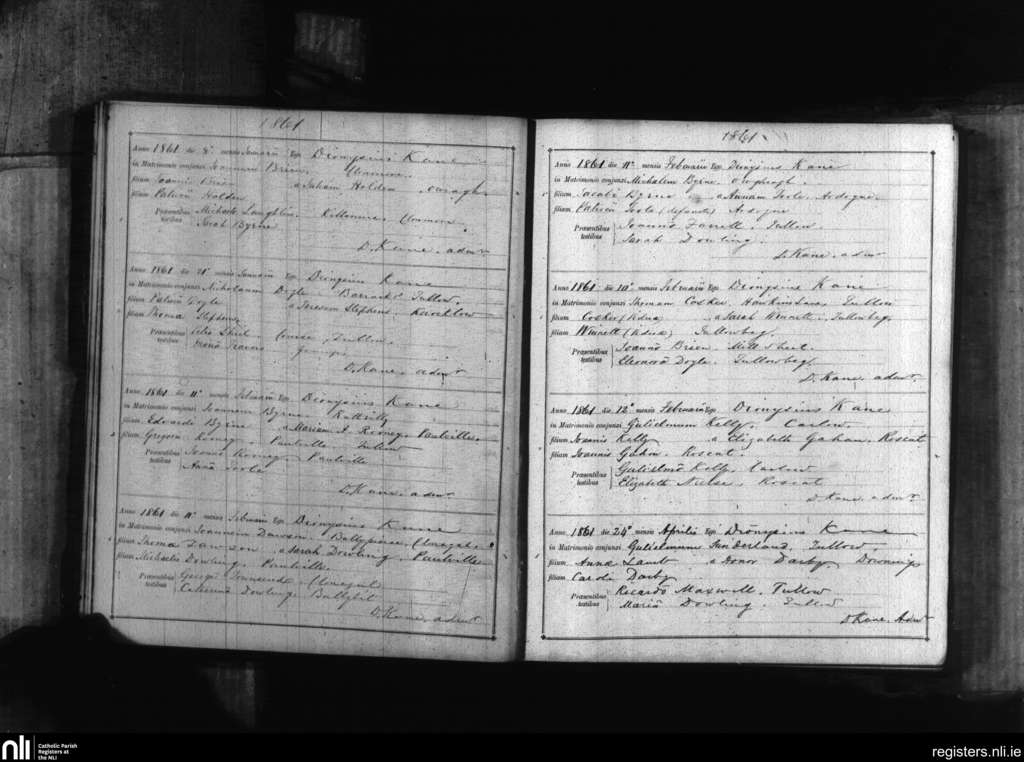 Tullow; County of Carlow; Diocese of Kildare and Leighlin. Marriages, Jan. 1861 to Apr. 1861
