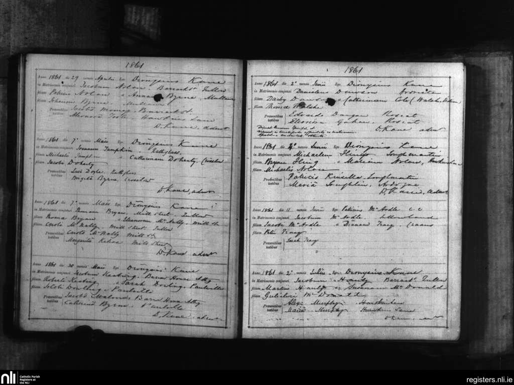 Tullow; County of Carlow; Diocese of Kildare and Leighlin. Marriages, Apr. 1861 to July 1861
