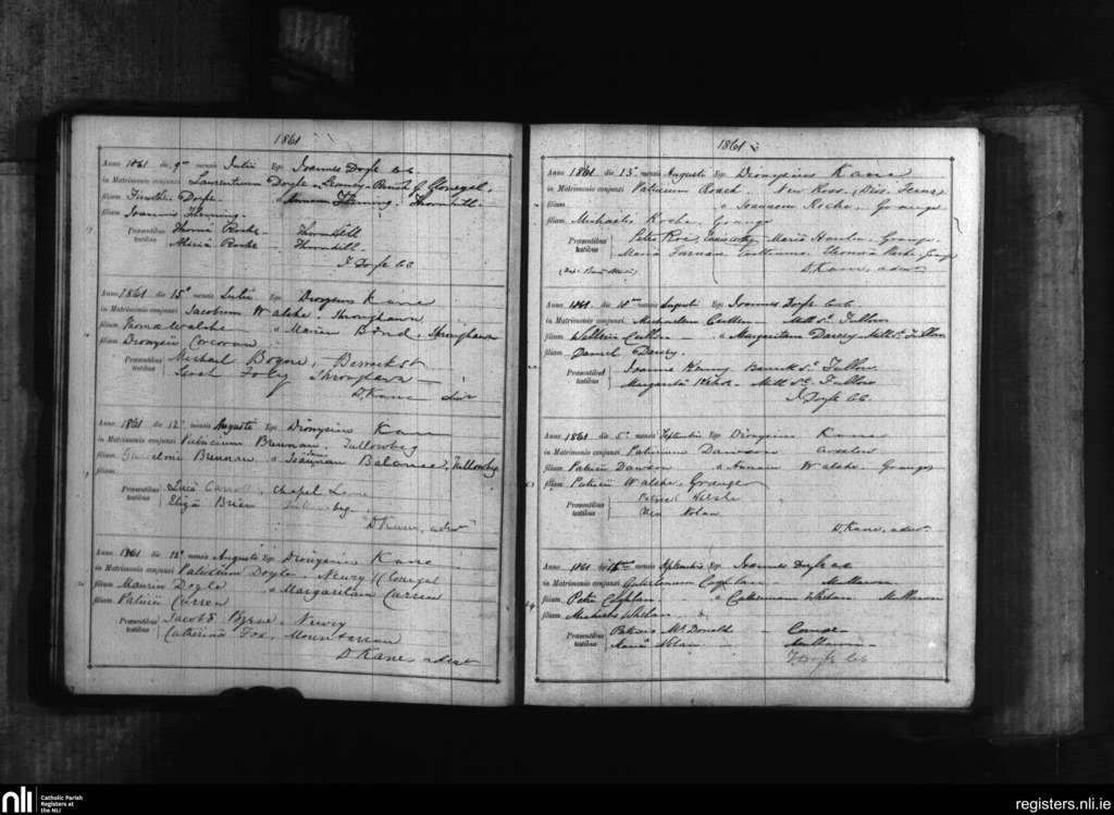 Tullow; County of Carlow; Diocese of Kildare and Leighlin. Marriages, July 1861 to Sep. 1861