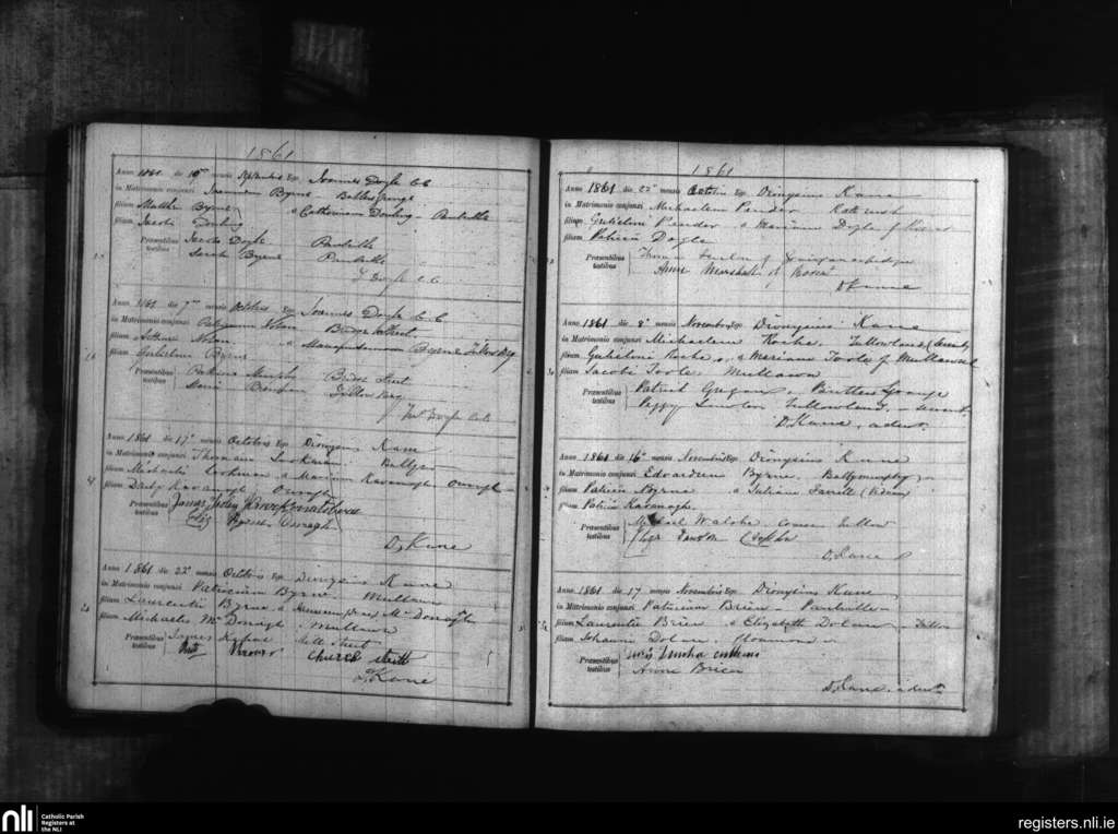 Tullow; County of Carlow; Diocese of Kildare and Leighlin. Marriages, Sep. 1861 to Nov. 1861