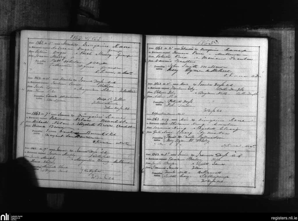 Tullow; County of Carlow; Diocese of Kildare and Leighlin. Marriages, Nov. 1862 to June 1863