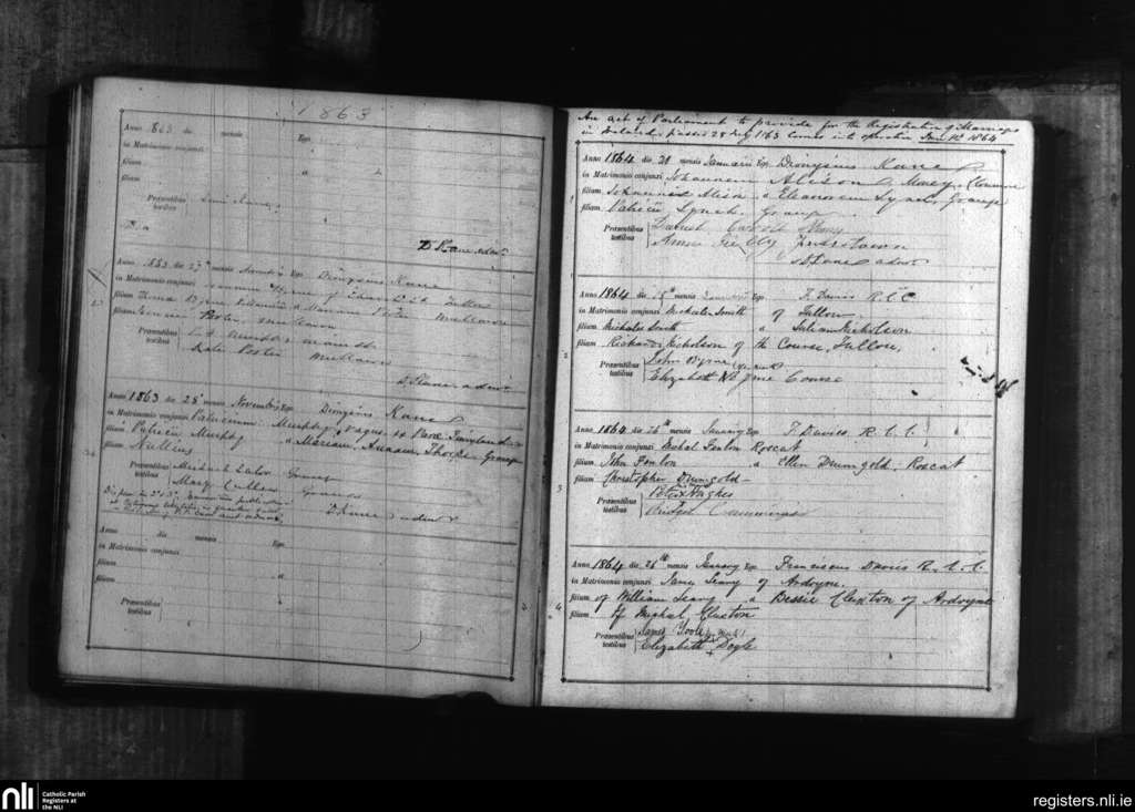 Tullow; County of Carlow; Diocese of Kildare and Leighlin. Marriages, Nov. 1863 to Jan. 1864