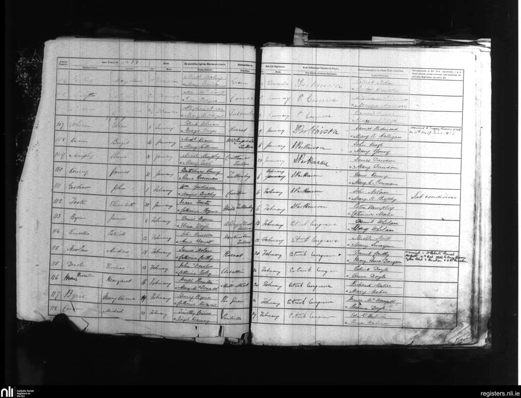 Tullow; County of Carlow; Diocese of Kildare and Leighlin. Baptisms, Dec. 1876 to Feb. 1877