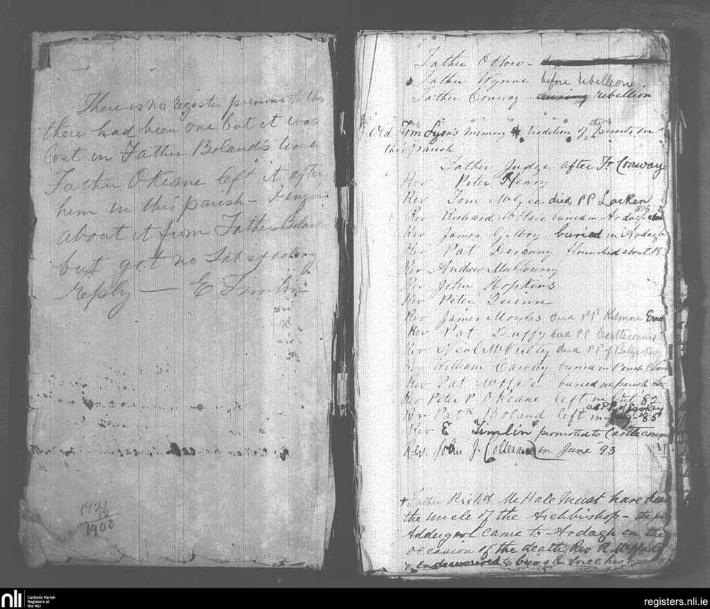 Ardagh; County of Mayo; Diocese of Killala. Baptisms