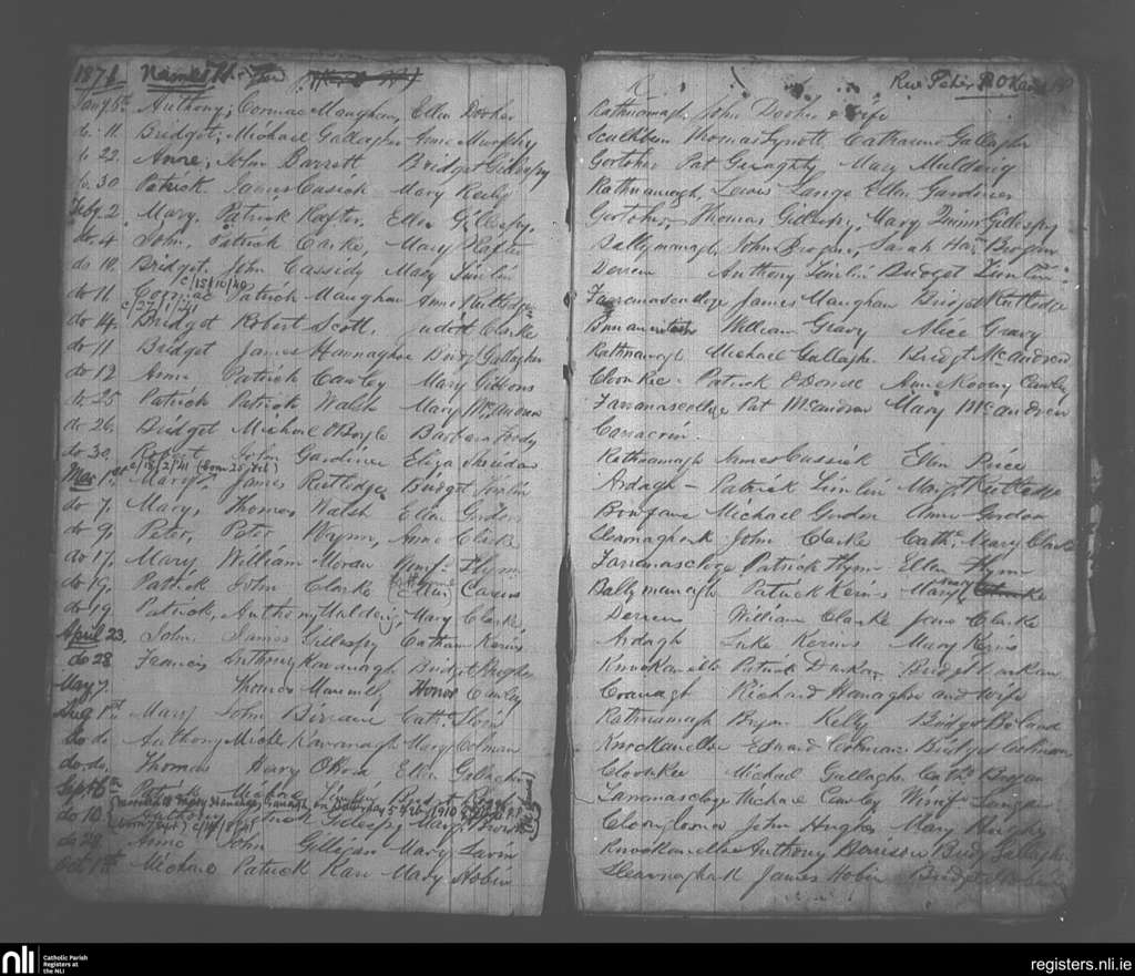 Ardagh; County of Mayo; Diocese of Killala. Baptisms, Marriages, Jan. 1871 to Feb. 1910