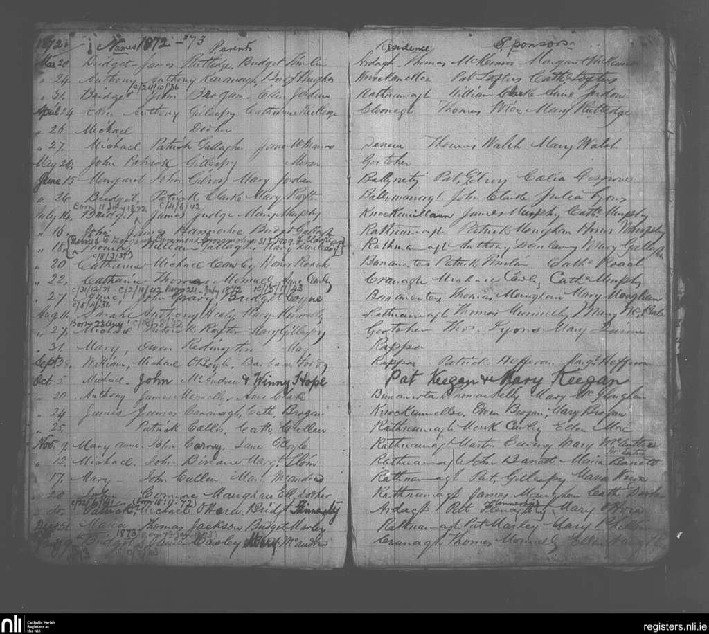 Ardagh; County of Mayo; Diocese of Killala. Baptisms, Marriages, Mar. 1872 to May 1909