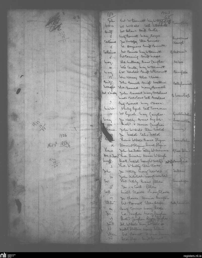Backs; County of Mayo; Diocese of Killala. Baptisms, Oct. 1854 to Jan. 1855