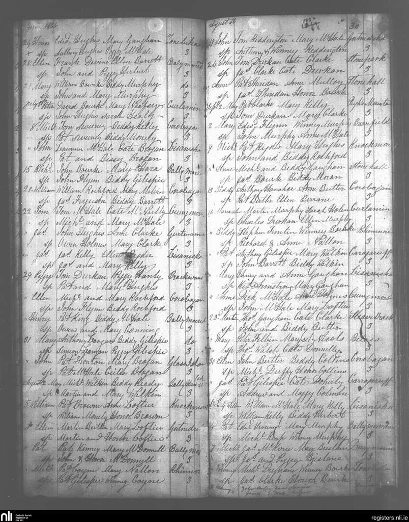 Backs; County of Mayo; Diocese of Killala. Baptisms, June 1866 to Oct. 1866