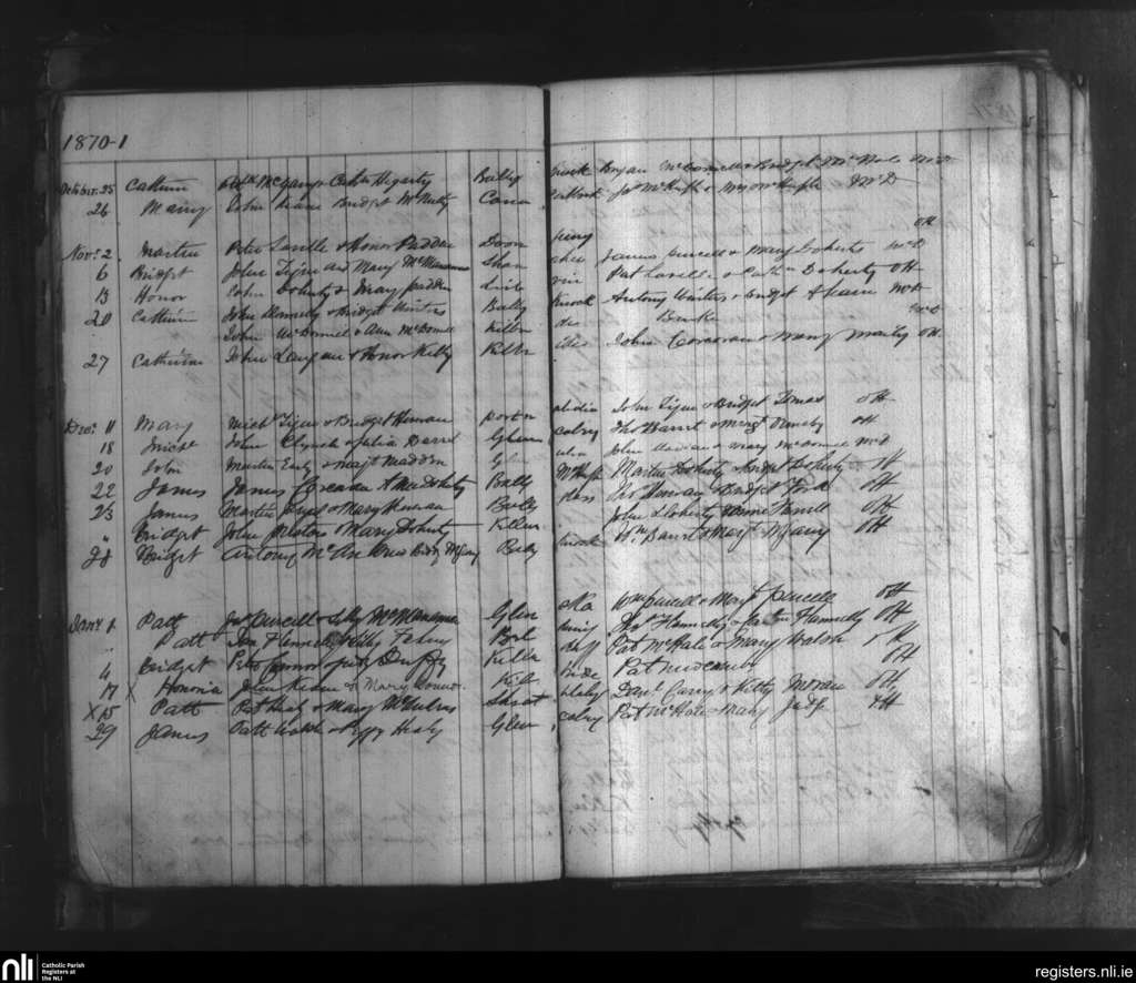 Ballycastle; County of Mayo; Diocese of Killala. Baptisms, Oct. 1870 to Jan. 1871