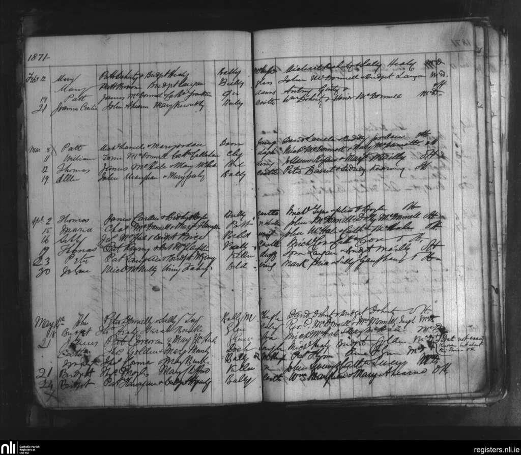 Ballycastle; County of Mayo; Diocese of Killala. Baptisms, Feb. 1871 to May 1871