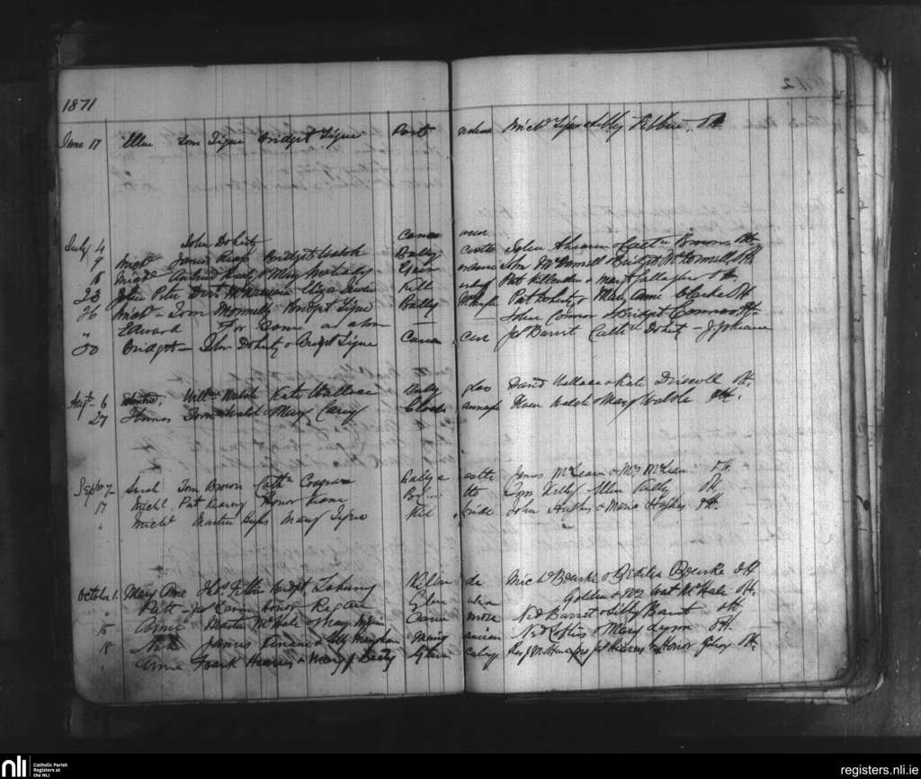 Ballycastle; County of Mayo; Diocese of Killala. Baptisms, June 1871 to Oct. 1871
