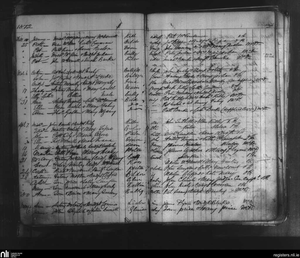 Ballycastle; County of Mayo; Diocese of Killala. Baptisms, Feb. 1872 to May 1872