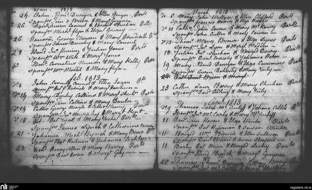 Liscarroll; County of Cork; Diocese of Cloyne. Baptisms, Jan. 1813 to Apr. 1813