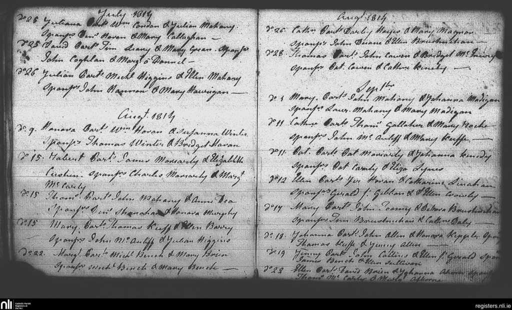 Liscarroll; County of Cork; Diocese of Cloyne. Baptisms, July 1814 to Sep. 1814
