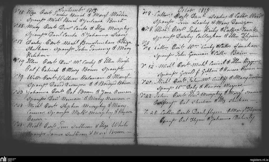 Liscarroll; County of Cork; Diocese of Cloyne. Baptisms, Sep. 1815 to Oct. 1815