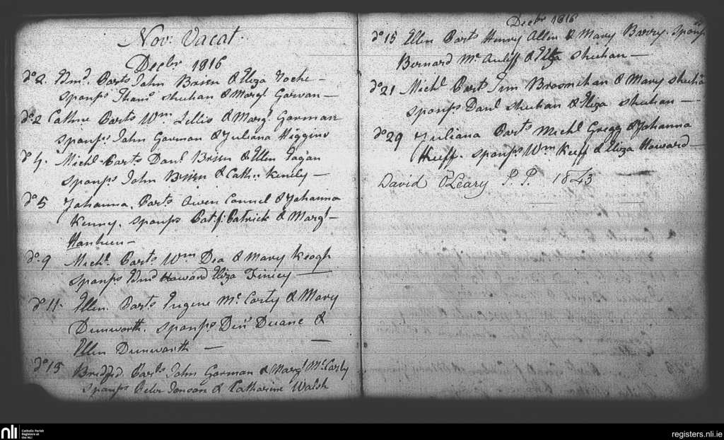Liscarroll; County of Cork; Diocese of Cloyne. Baptisms, Dec. 1816