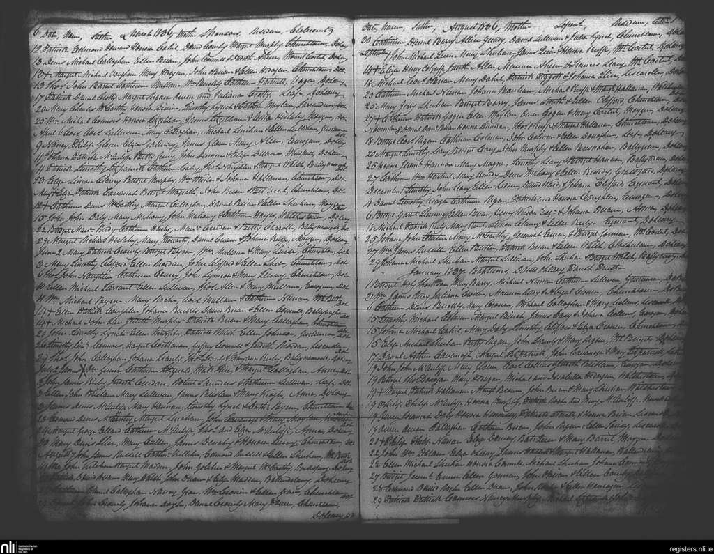 Liscarroll; County of Cork; Diocese of Cloyne. Baptisms, Mar. 1836 to Jan. 1837