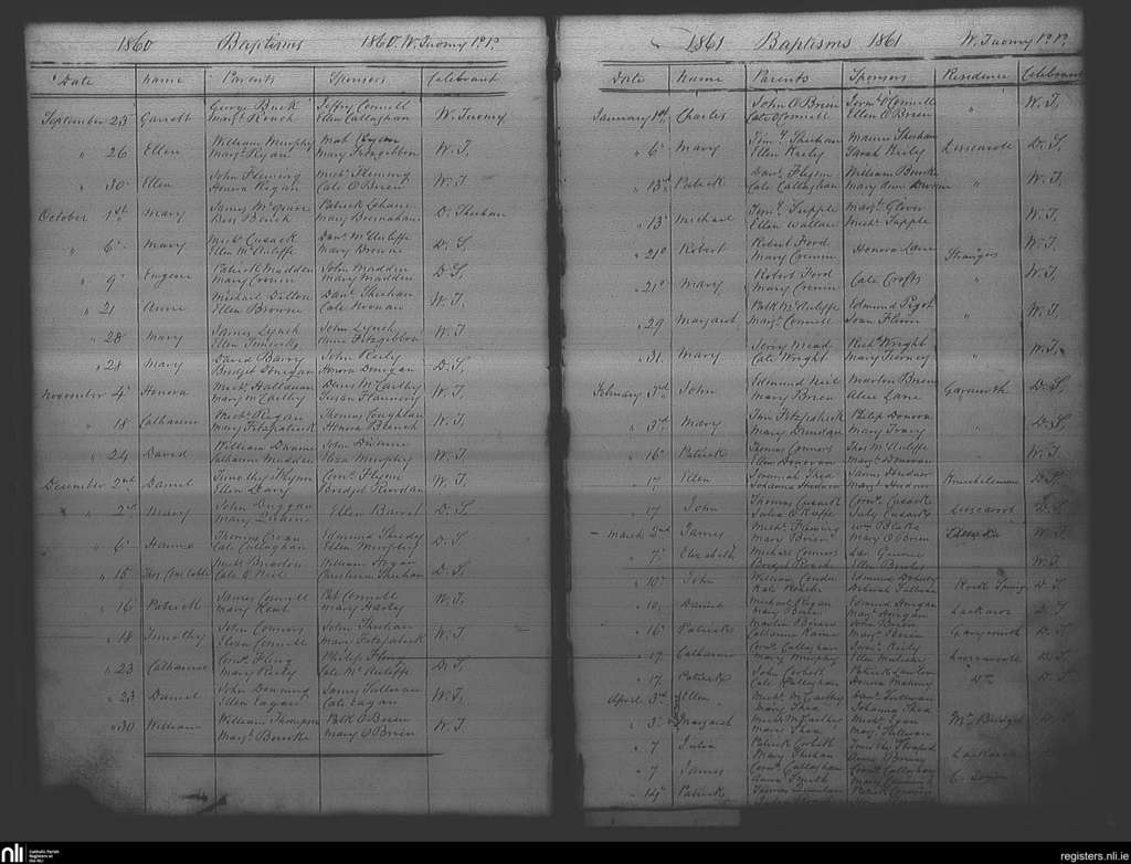 Liscarroll; County of Cork; Diocese of Cloyne. Baptisms, Sep. 1860 to Apr. 1861