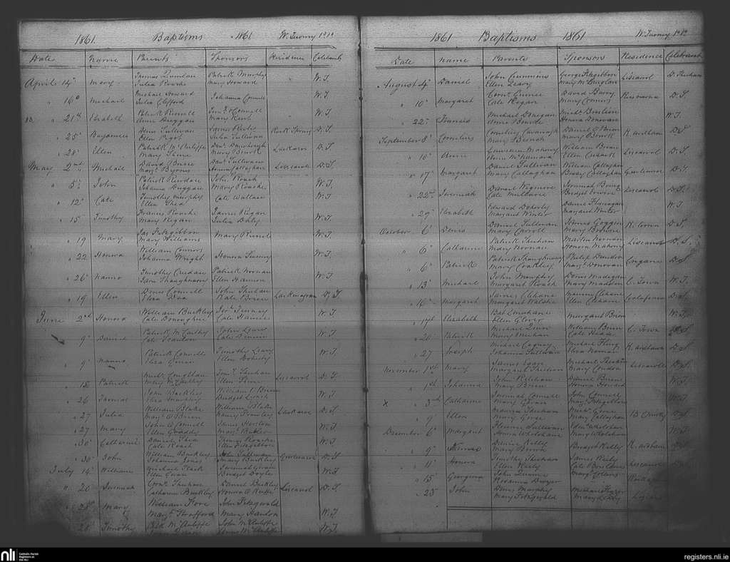 Liscarroll; County of Cork; Diocese of Cloyne. Baptisms, Apr. 1861 to Dec. 1861