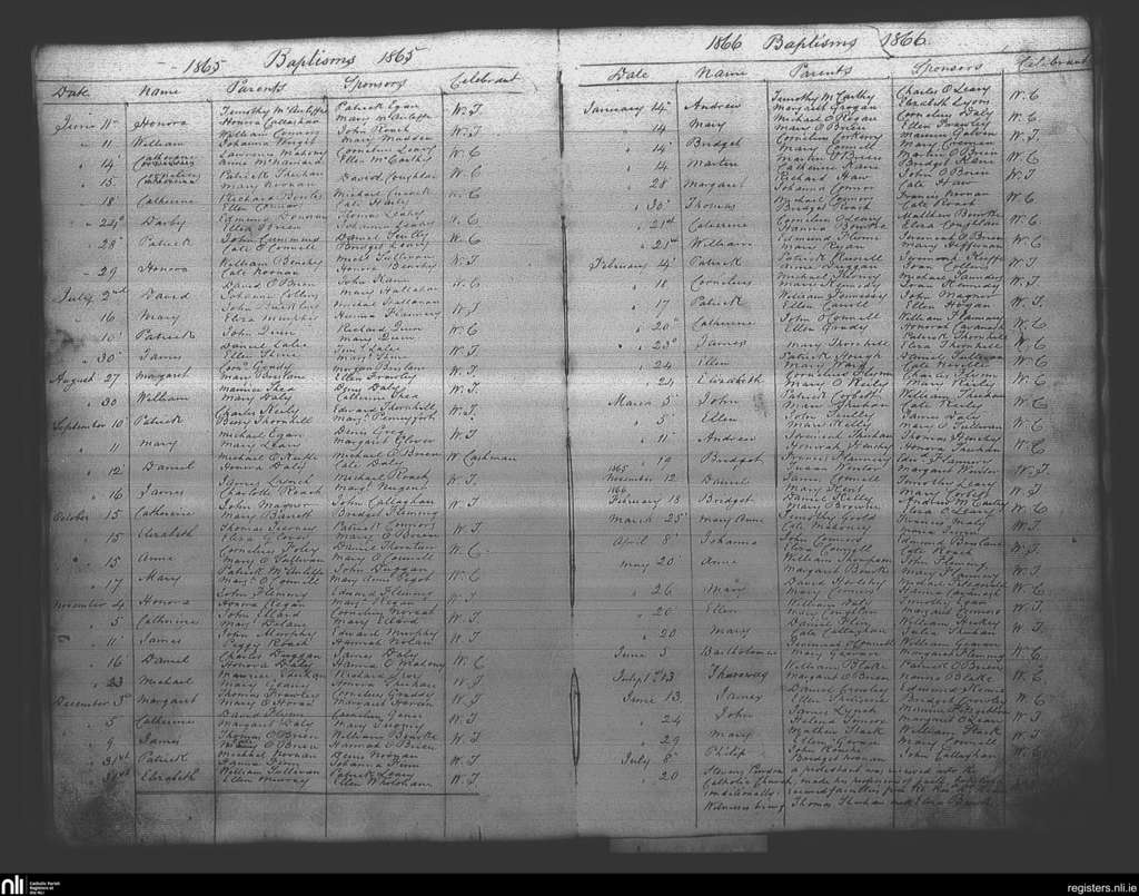 Liscarroll; County of Cork; Diocese of Cloyne. Baptisms, June 1865 to July 1866