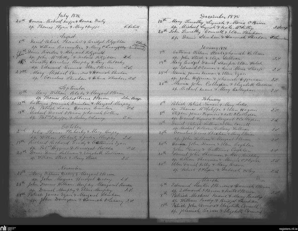 Liscarroll; County of Cork; Diocese of Cloyne. Baptisms, July 1875 to Mar. 1876