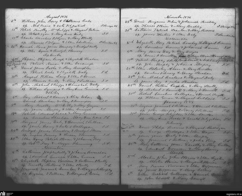 Liscarroll; County of Cork; Diocese of Cloyne. Baptisms, Marriages, Aug. 1876 to Feb. 1928
