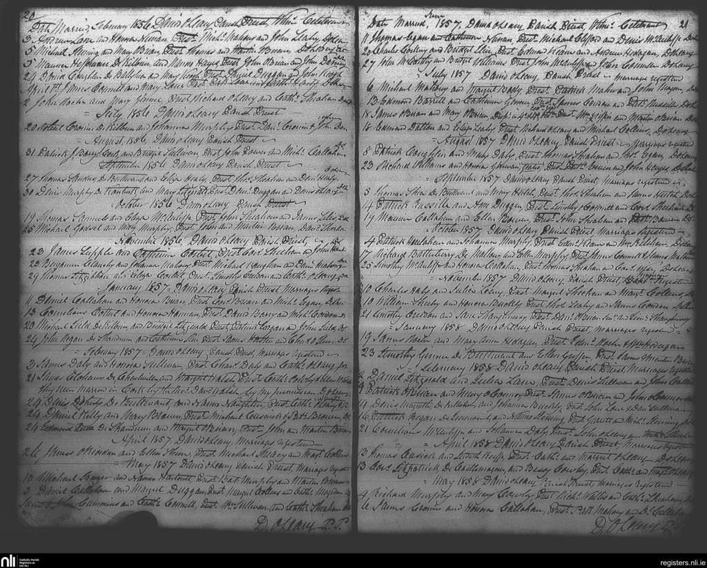 Liscarroll; County of Cork; Diocese of Cloyne. Marriages, Feb. 1856 to May 1858