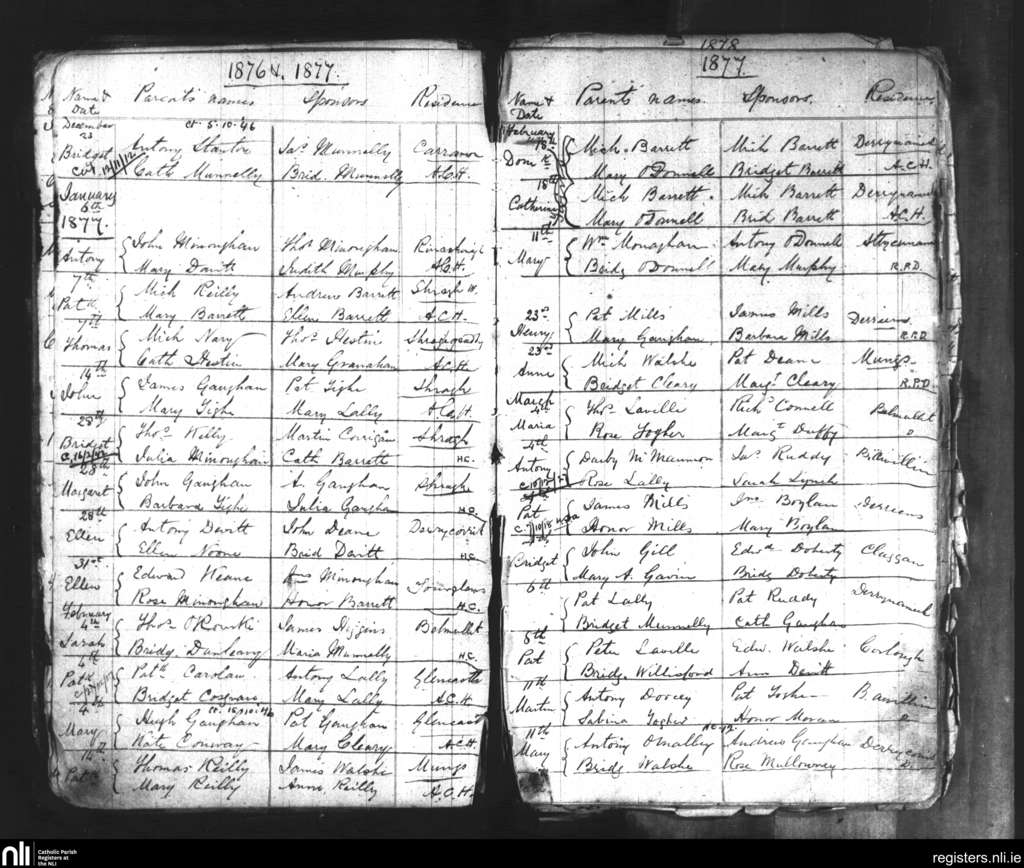 Belmullet; County of Mayo; Diocese of Killala. Baptisms, Dec. 1876 to Mar. 1877