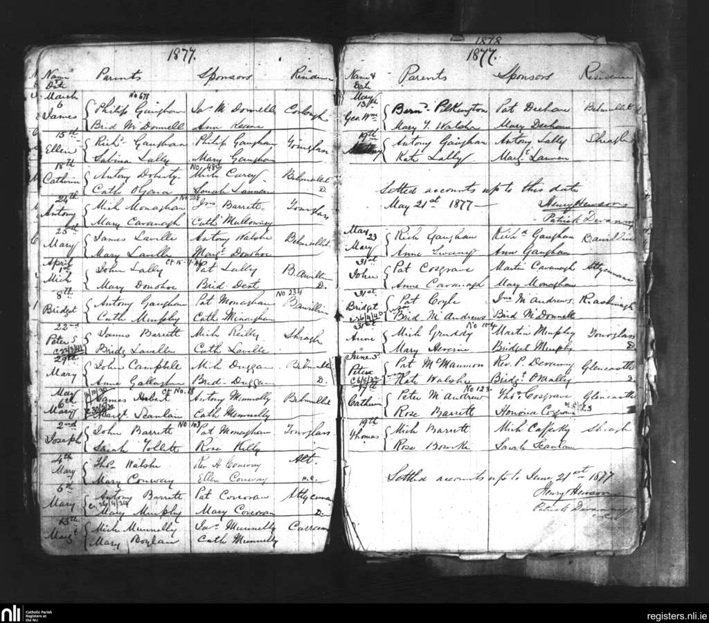 Belmullet; County of Mayo; Diocese of Killala. Baptisms, Mar. 1877 to June 1877