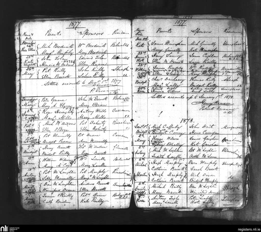 Belmullet; County of Mayo; Diocese of Killala. Baptisms, Nov. 1877 to Jan. 1878