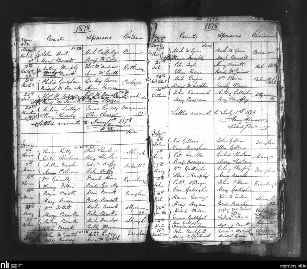 Belmullet; County of Mayo; Diocese of Killala. Baptisms, May 1878 to July 1878