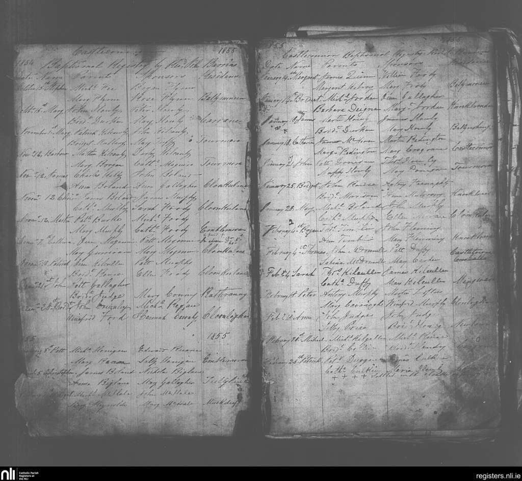 Castleconnor; County of Sligo; Diocese of Killala. Baptisms, Oct. 1854 to Feb. 1855