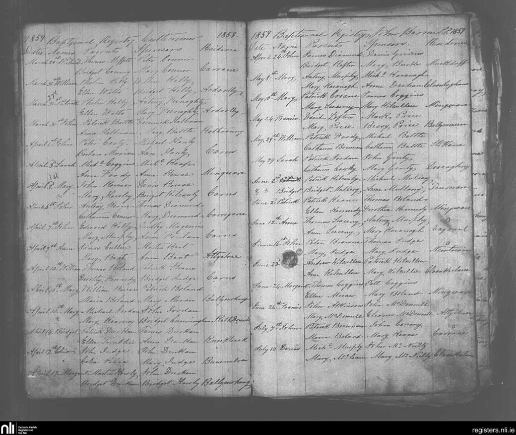 Castleconnor; County of Sligo; Diocese of Killala. Baptisms, Mar. 1859 to July 1859