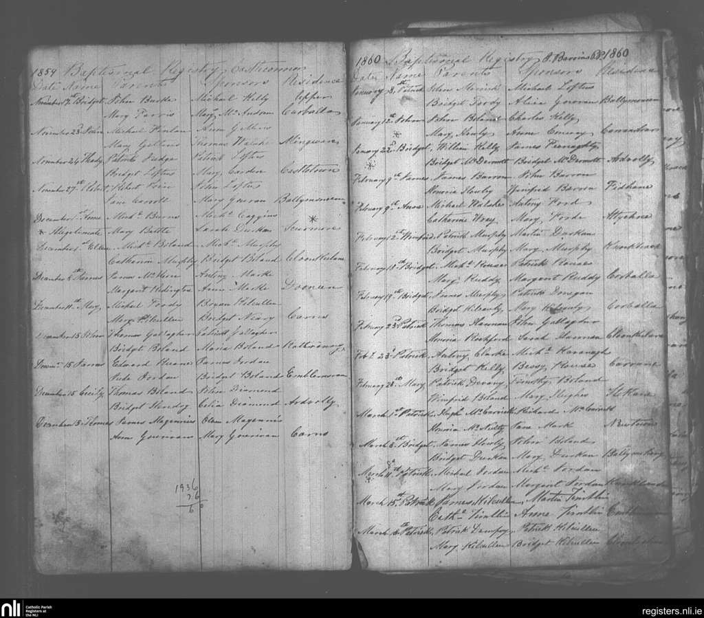 Castleconnor; County of Sligo; Diocese of Killala. Baptisms, Nov. 1859 to Mar. 1860