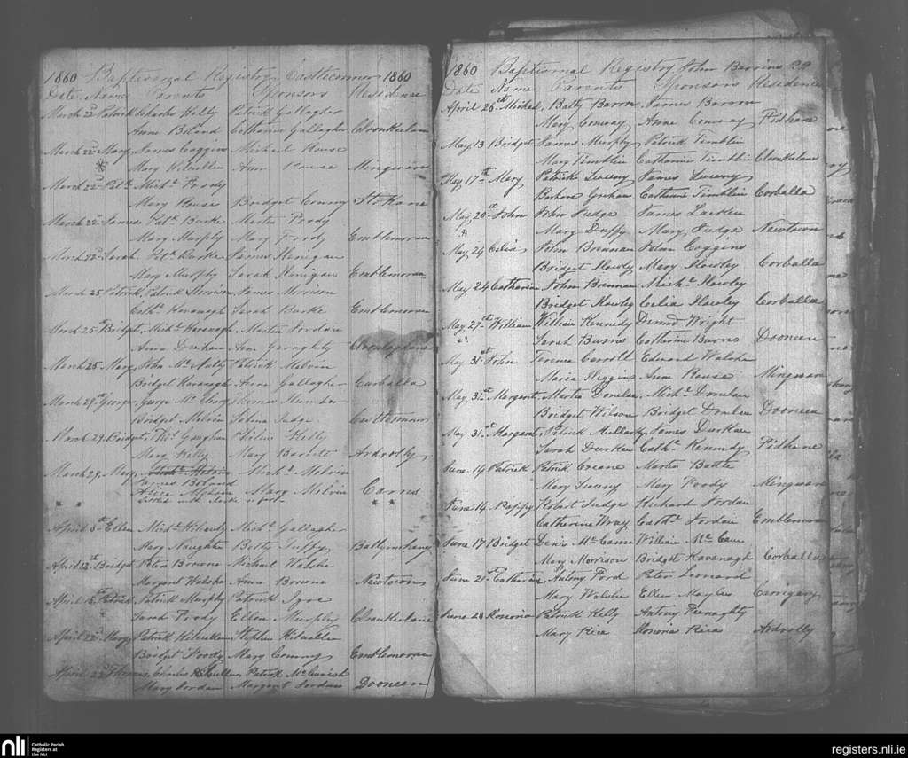 Castleconnor; County of Sligo; Diocese of Killala. Baptisms, Mar. 1860 to June 1860