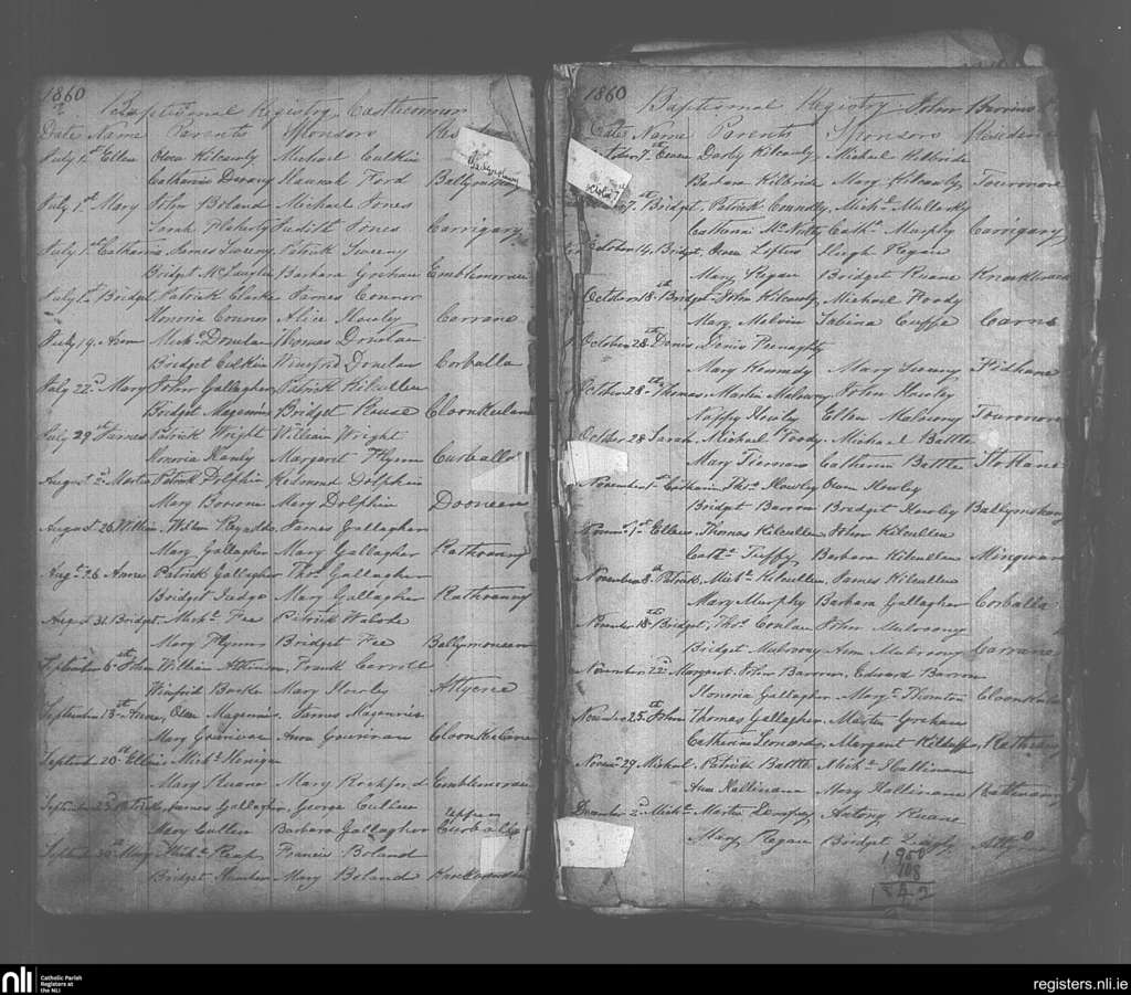 Castleconnor; County of Sligo; Diocese of Killala. Baptisms, July 1860 to Dec. 1860