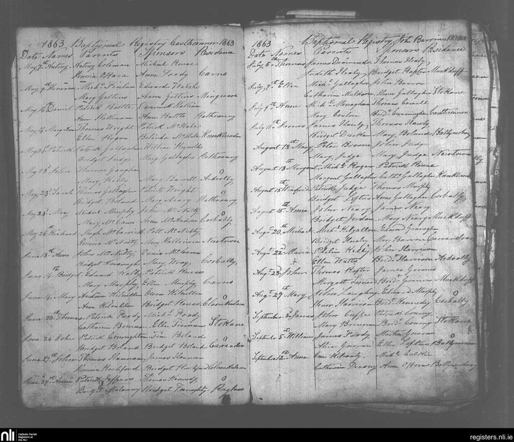 Castleconnor; County of Sligo; Diocese of Killala. Baptisms, May 1863 to Sep. 1863