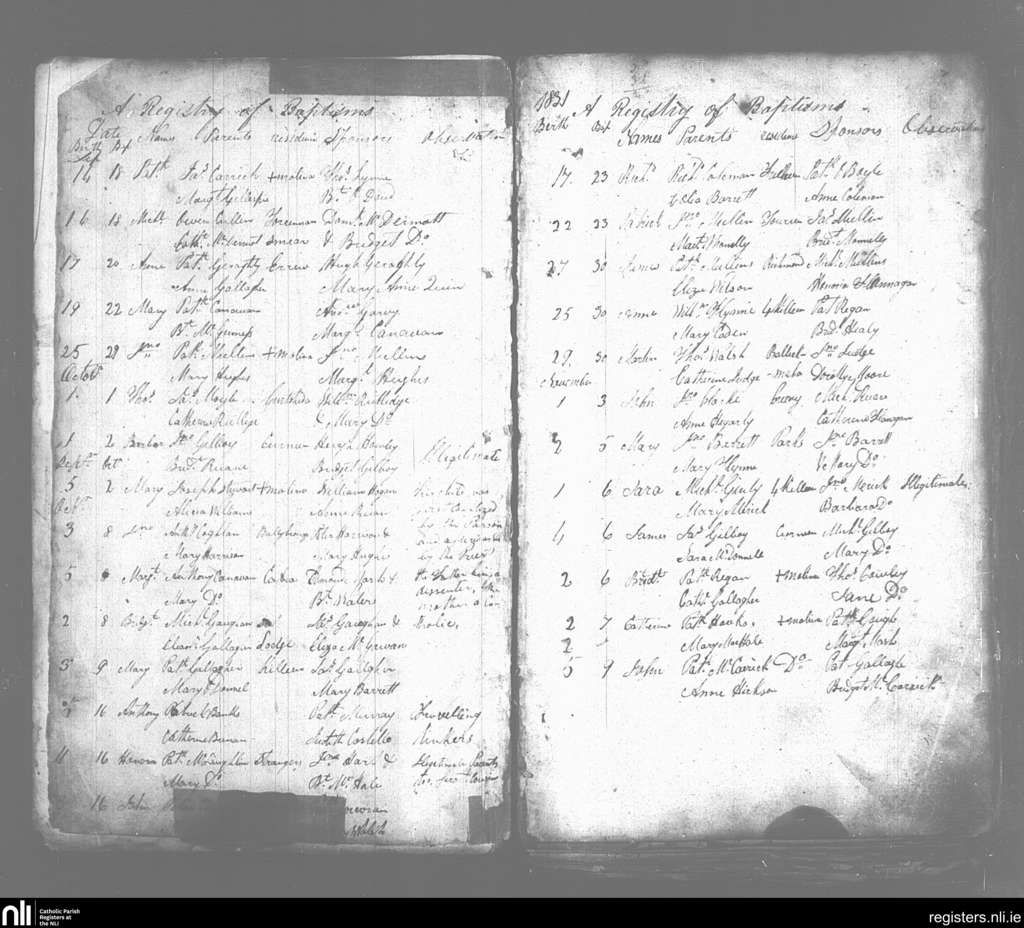 Crossmolina; County of Mayo; Diocese of Killala. Baptisms, Sep. 1831 to Nov. 1831