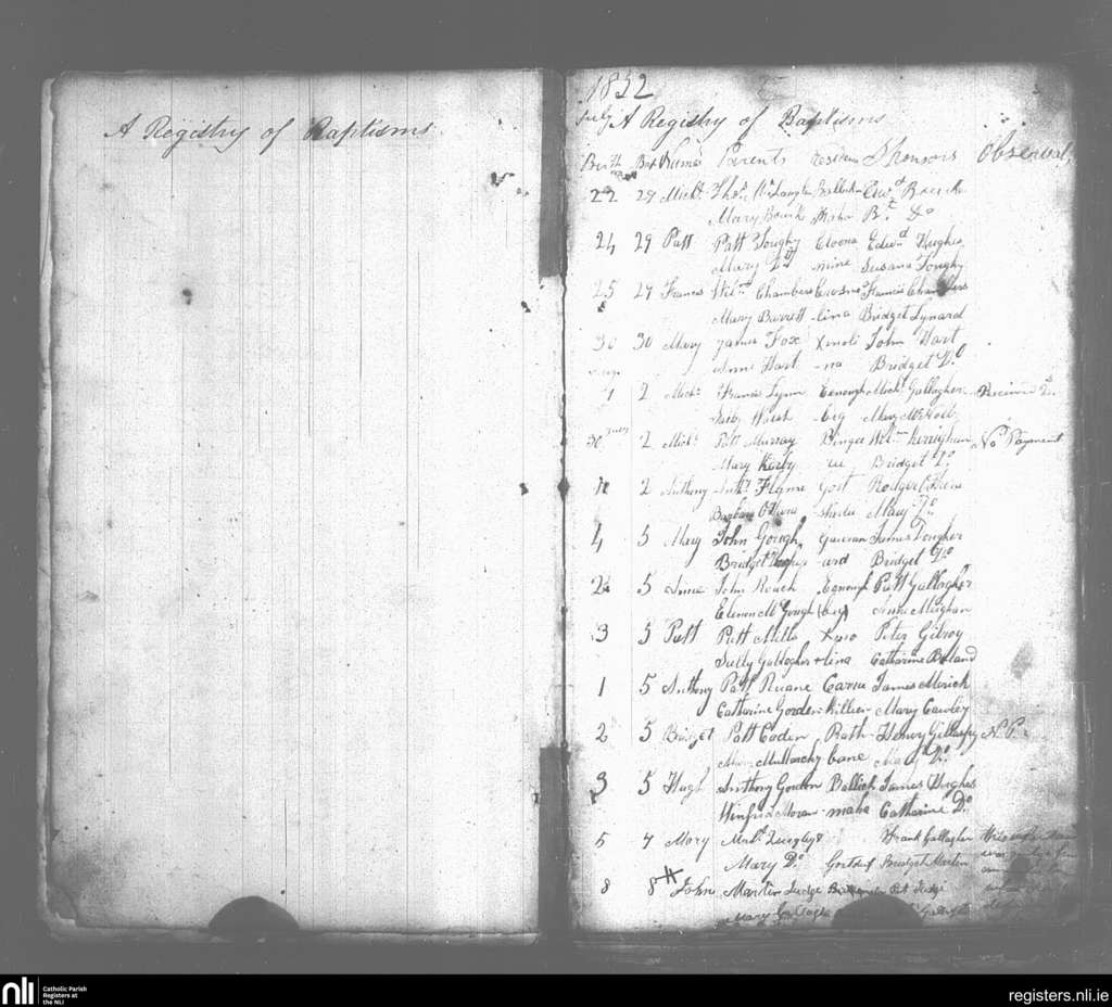 Crossmolina; County of Mayo; Diocese of Killala. Baptisms, July 1832 to Aug. 1832
