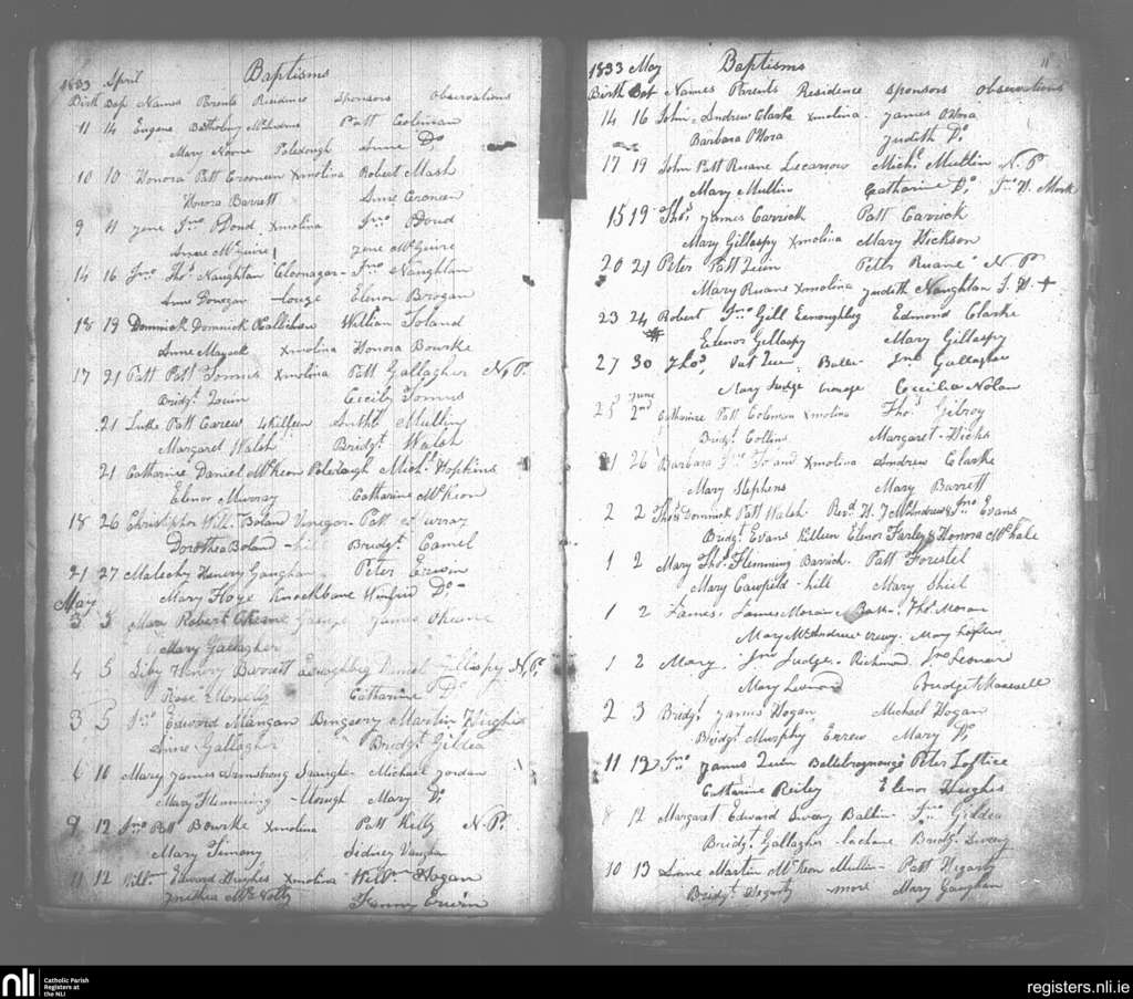 Crossmolina; County of Mayo; Diocese of Killala. Baptisms, Apr. 1833 to June 1833