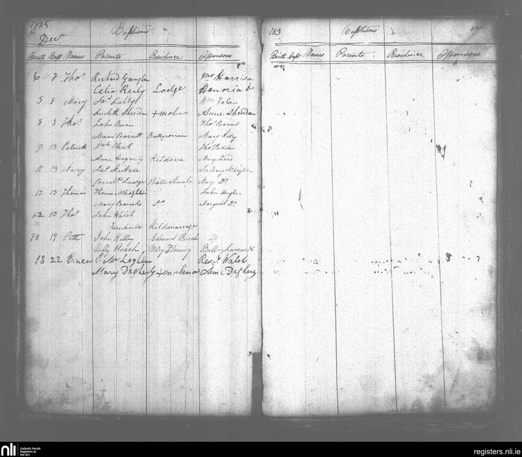 Crossmolina; County of Mayo; Diocese of Killala. Baptisms, Dec. 1835