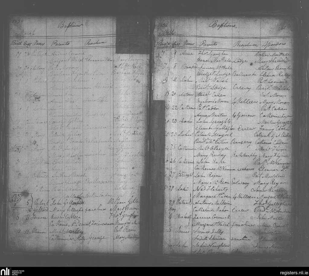 Crossmolina; County of Mayo; Diocese of Killala. Baptisms, Feb. 1837 to May 1838